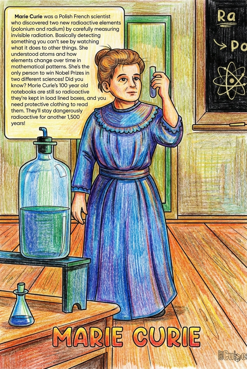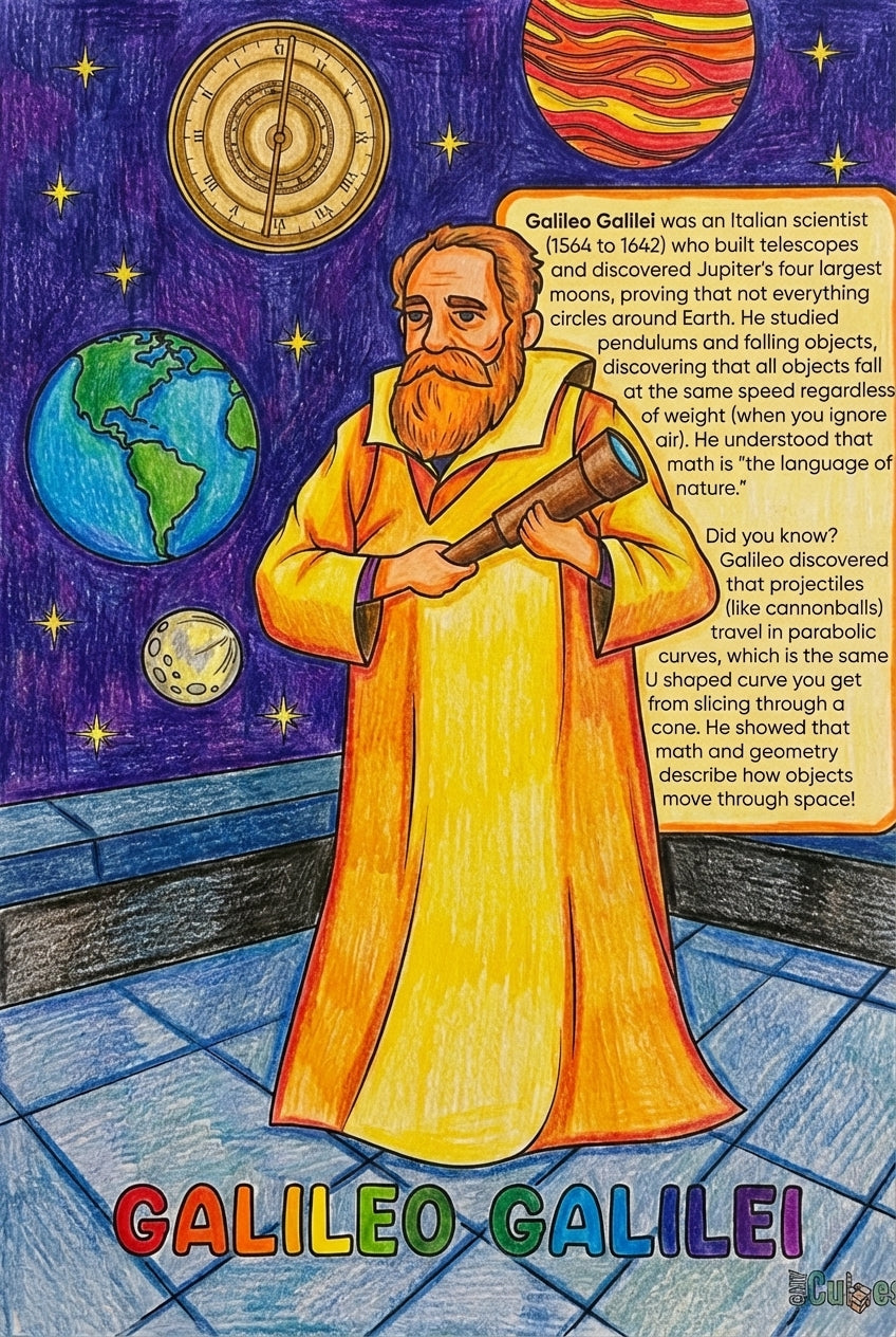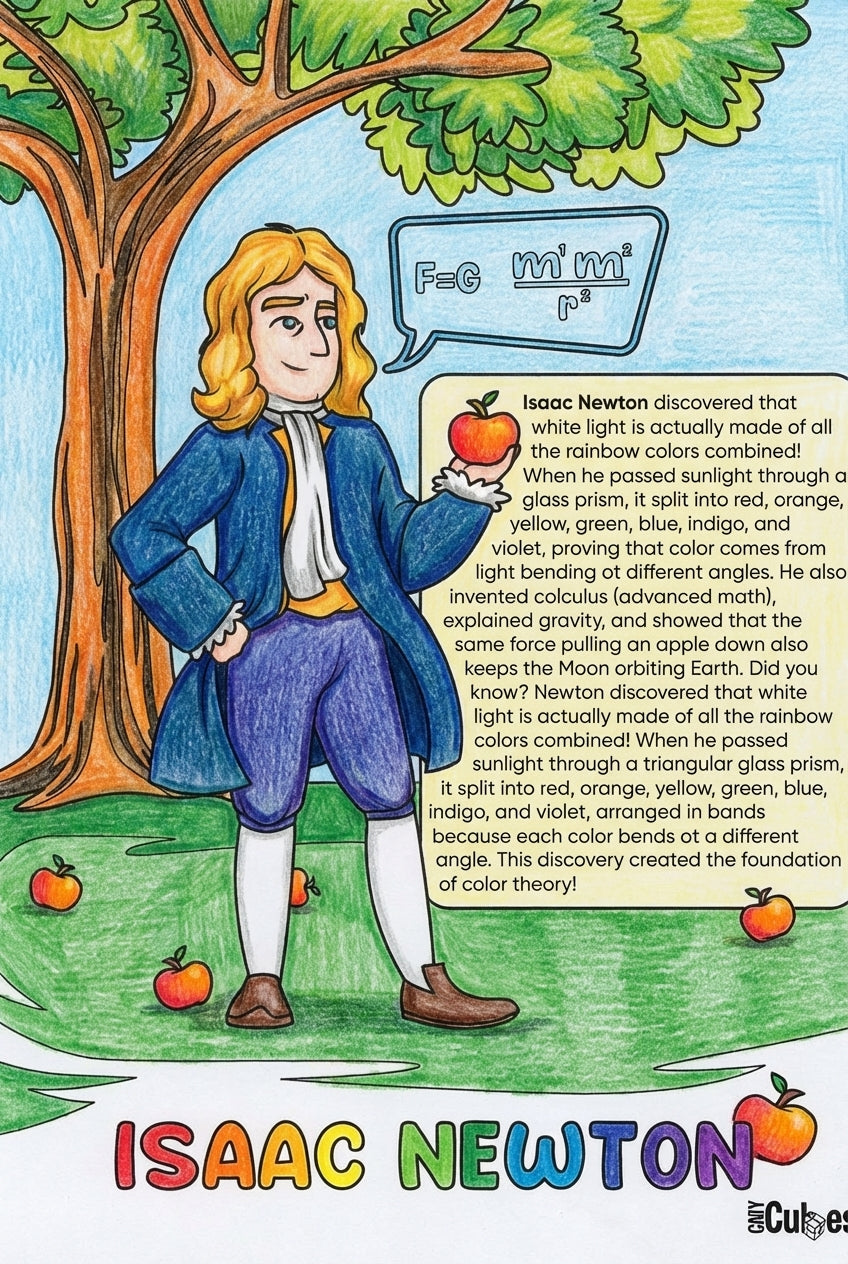 Discover the amazing mathematicians, scientists, and innovators who shaped our world through the power of shapes, colours, and patterns! This colouring book brings together 6 extraordinary pioneers who unlocked the secrets of light, colour, electricity, and the universe itself.